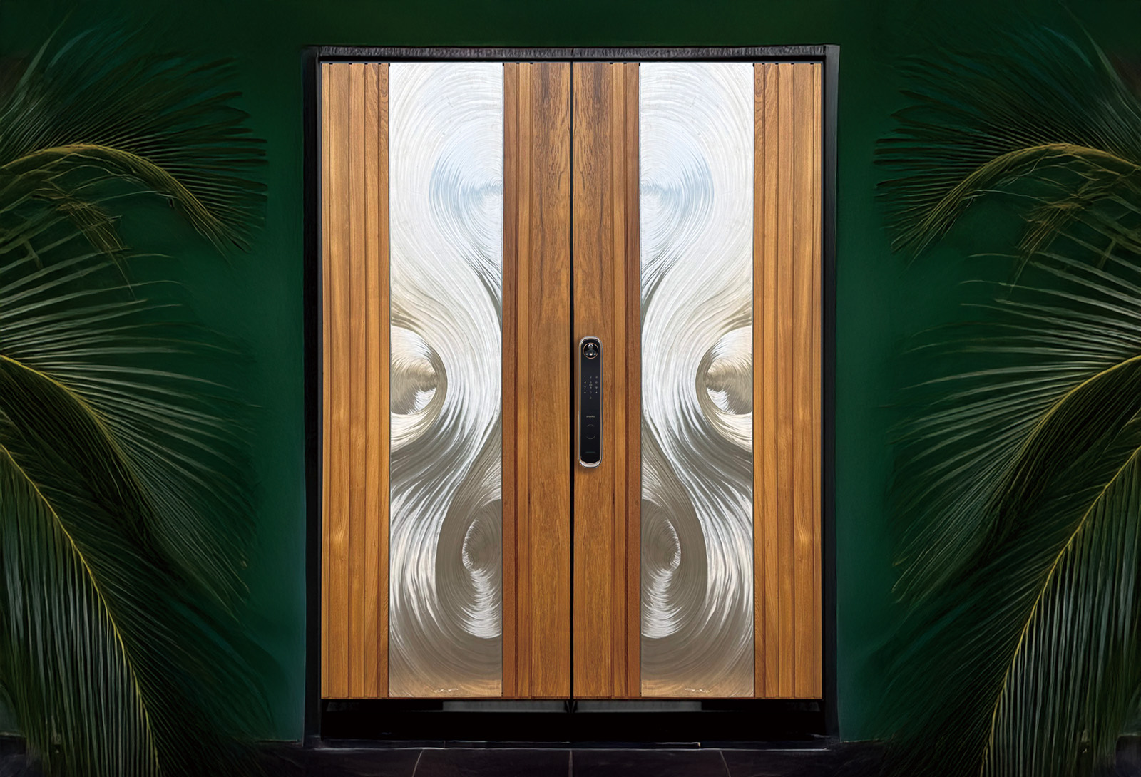 藍鯨新品 H4湖光 玄關隔音門 鈦金緬甸柚木拼接大門